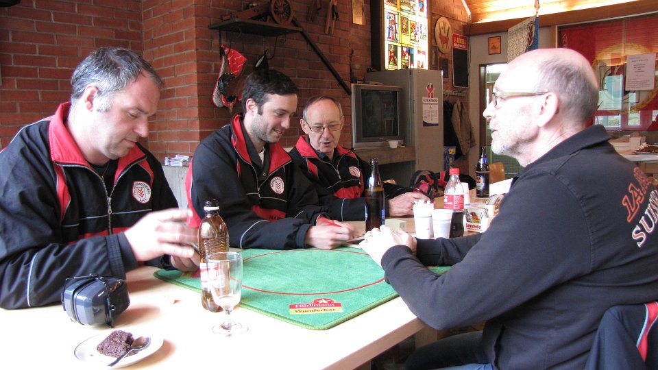 Es gab einige Überraschungen so z.B. Walter Gerhard, er erzielte mit hervorragenden 92 Punkten das beste Resultat im Vereinsstich für unseren Verein, beim Auszahlungsstich erzielte er mit 56 Punkten ein weiteres Spitzenresultat. Oder Manuela Bäumler, sie erzielte mit 87 Punkten ihr erstes Kranzresultat überhaupt. Maya Bäumler sicherte sich den dreifachen Kranz und erzielte im Vereinsstich gleich viel, wie ihr Bruder Rolf – 89 Punkte. Rolf sicherte sich weniger überraschend als einziger den vierfachen Kranz.